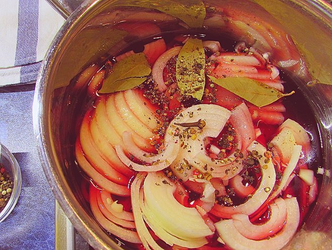 Остужаем маринад. Заливать селёдку только холодным маринадом.