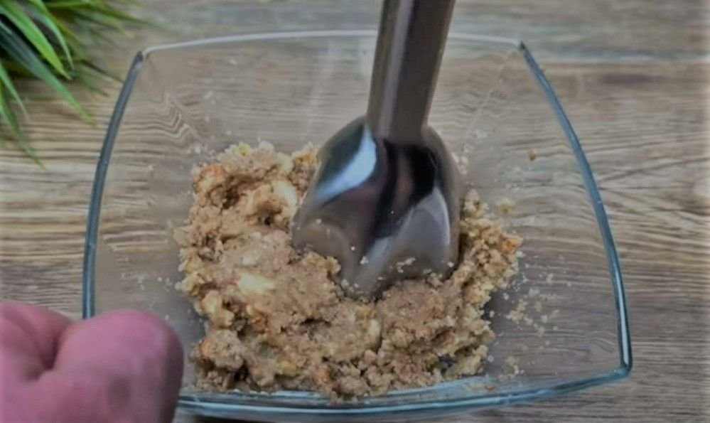 Очищаем орехи от скорлупы. Чистим их, и измельчаем. Можно обычной скалкой, но проще блендером. Измельчаем мелко, но не в пастообразное состояние.