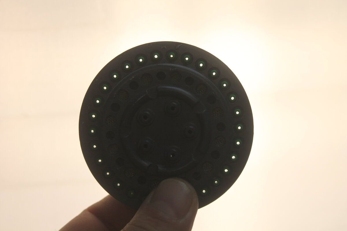Если внимательно присмотреться, то можно увидеть, что большинство отверстий забито. Да-да, я специально не чистил лейку, чтобы фото получилось более наглядным.