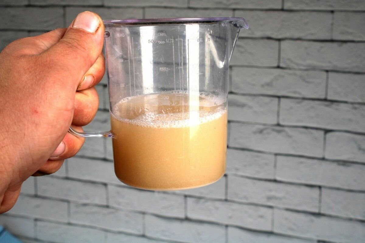 Вот и всё друзья, у нас получилась вот такая жидкость (немного даже густая) Это и есть полноценный аналог «крота» гидроксид натрия в чистом виде. Заливаем в раковину, где имеются засоры, оставляем на 2 часа и промыть проточной водой.