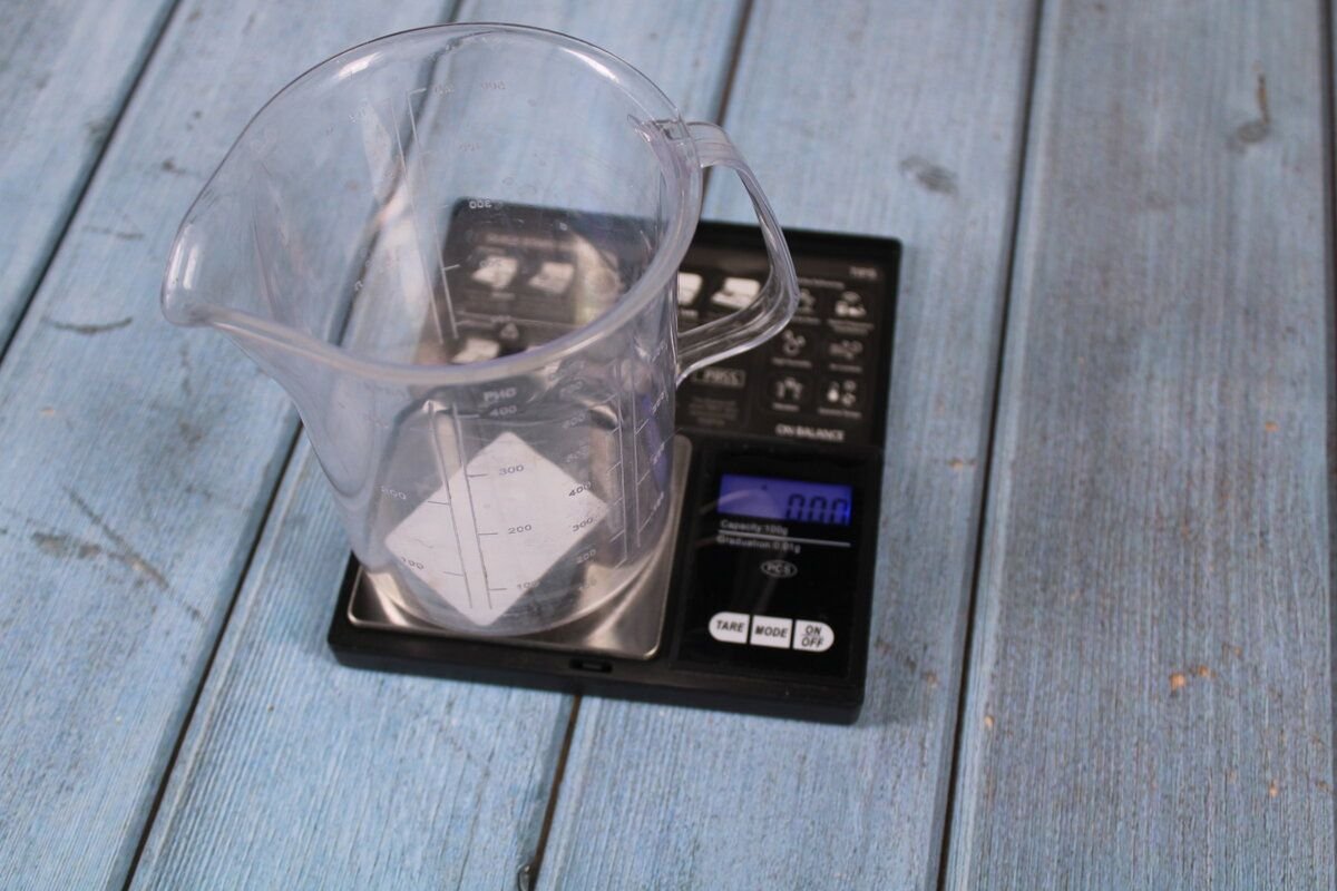Одним словом, нам нужно сделать раствор щелочи (гидроксид натрия) не переживайте, если не знакомы с химией, я тоже её плохо знаю 😉, но раствор сделать у нас получится.