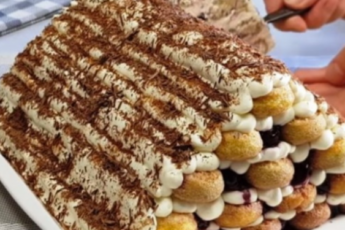 Інгредієнти: печиво Савоярді, 30 шт. Для крему: сир м’який, 400 г; сметана, 300 г; пудра цукрова, 6 ст.л.;